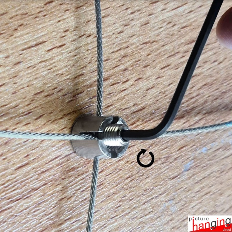 Cable Wire Cross Joiner for creating a window trellis or a wall mesh display grid. Compatible with our cable display systems that use steel wires of up to 2mm thickness. Hang acrylic poster pockets, photos, cards, and plants. High-quality brass wire rope clip fitting with Allen/hex key bolt. Available in a premium polished chrome finish.