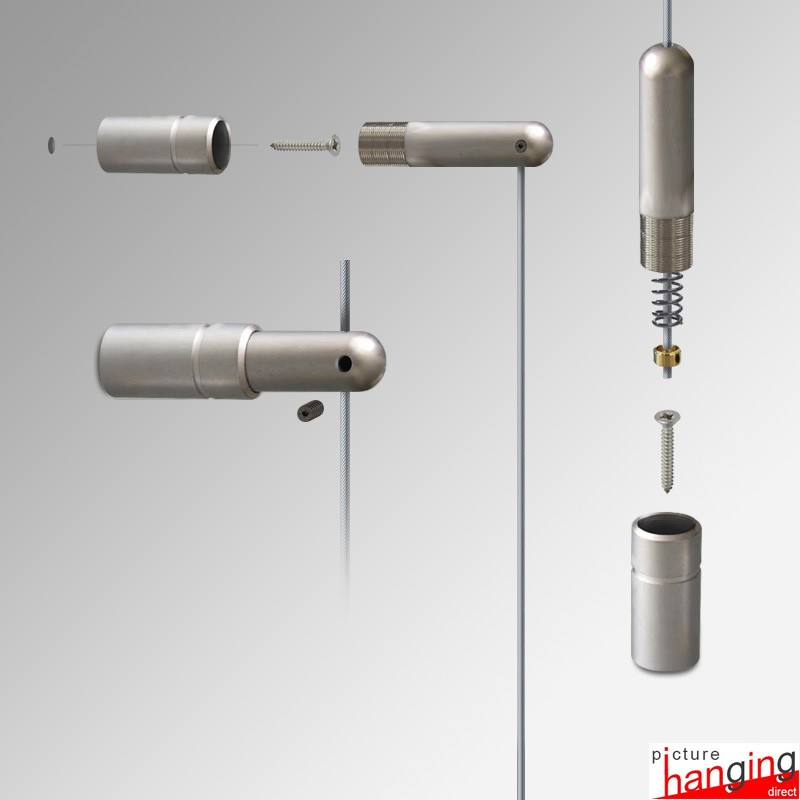 The Wall-to-Floor Cable Display Kit features durable brass fittings for mounting a 4m steel cable between the wall & floor. Ideal solution for rooms with very high ceilings, this ready-made cable display system kit creates professional advertising ideal for offices or retail advertising & signage. Available in satin & polished chrome. Price per 1 cable (2 cables needed for any display)