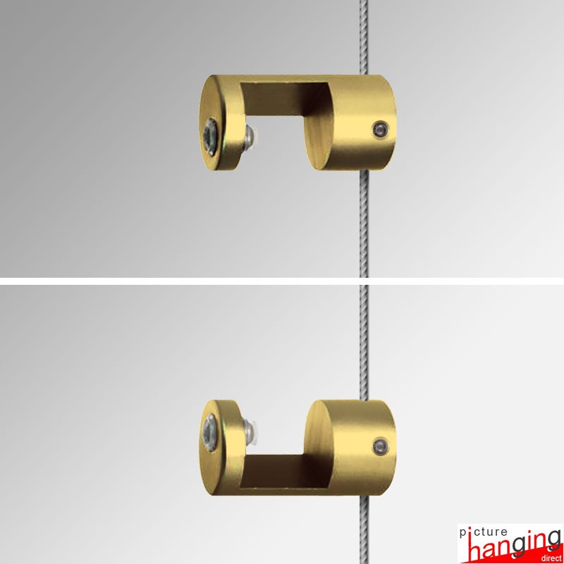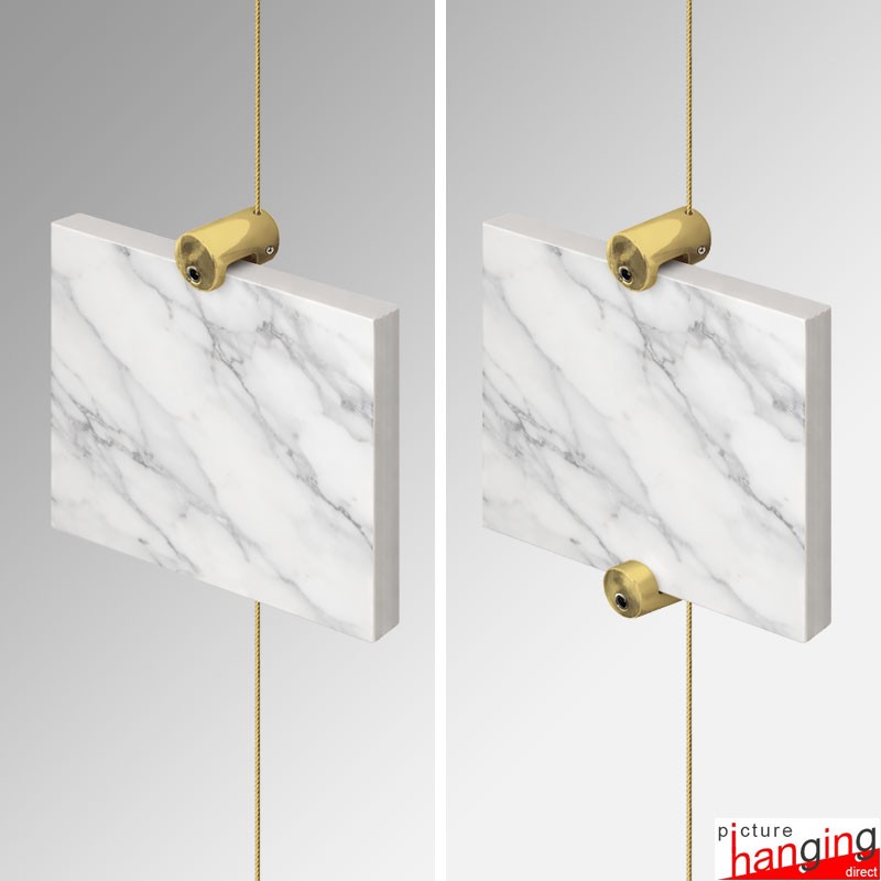 The Gold Top/Bottom Panel Support is constructed from brass and available in a premium gold-coated finish or various other colours including black, silver & polished chrome! Attaching gold supports to gold & brass coloured suspended cables creates prestigious displays with vertical arrangement of boards and tiles in columns, which can be presented from exhibition panels, wooden picture rails, gallery systems, or directly from ceilings.