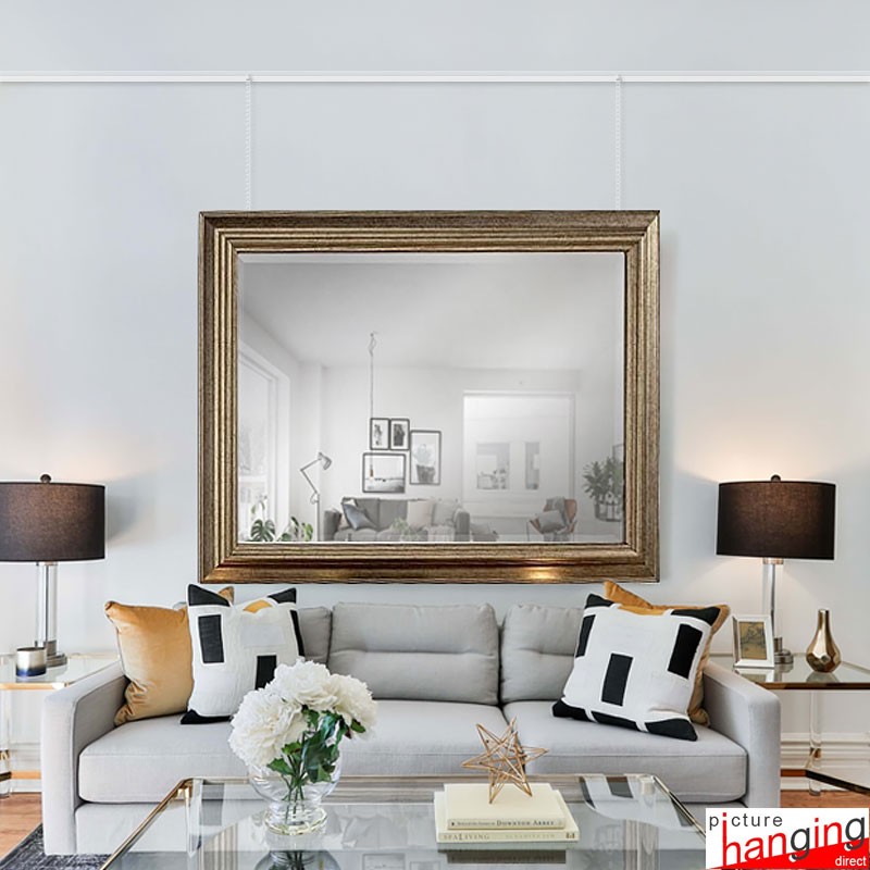 Tip: To hang small frames that are up to 18 inches wide, a single chain in the middle of the picture is sufficient for support. However, for any artwork or mirror wider than 18 inches, you will need at least two chains: one attached to the left side and another to the right side, to ensure that the suspended item remains level over time!