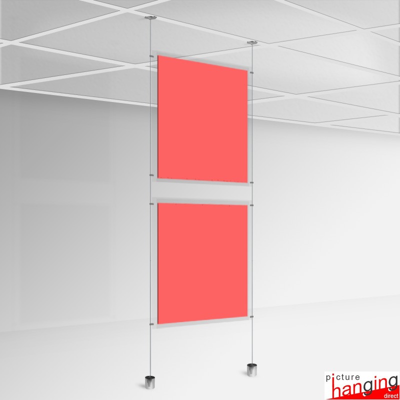 The Suspended Ceiling Twist-On Weighted Wires Set features 600g wire weights at the ends of the hanging cables, which rest on the floor instead of having cables directly installed into your expensive flooring, carpet or window sill. Mounting or switching posters is user-friendly - open the acrylic pocket from the top, remove the old advert, and slide in the new one. Acrylic pockets are available in A4, A3, A2 and large A1 (Portrait or Landscape formats). Installation requires no tools, and removing the hanging system entirely will not cause any damage or marks to your ceiling or floor! YOU DO NOT NEED ANY TOOLS to set up and use this POS hanging system!