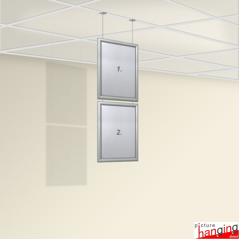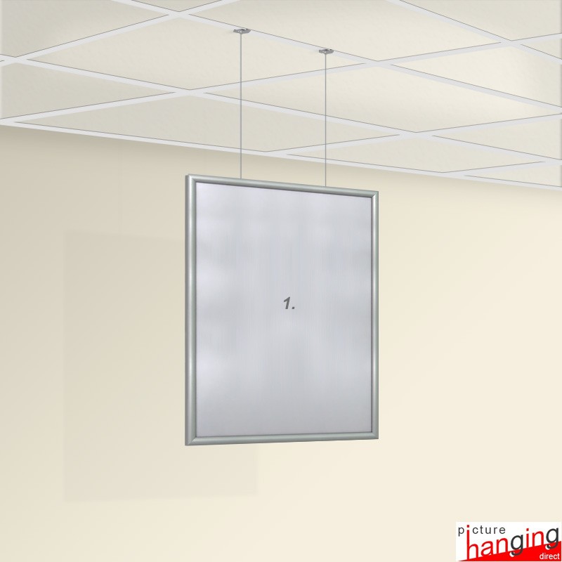 The Ceiling Grid Clip Frame Display Set is a ready-to-use poster frame kit for suspended ceilings - a unique hanging system that requires no screws or drilling to hang adverts & signage. Twist-on anchor clips attach directly to the false ceiling grid, and their wires suspend multiple poster snap frames! Sets feature: (2)Twist-On Clips, (2) 2m wires & (Up to 4) snap frames, sizes: A4 to A0.